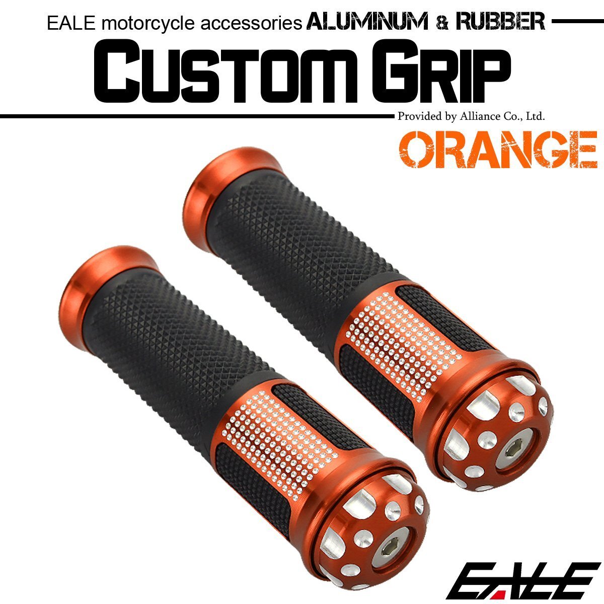 > バイク グリップ ハンドル アルミ ラバー バーエンド付き 22.2mm用 オレンジ 左右セット カスタム ドレスアップ S-243-O