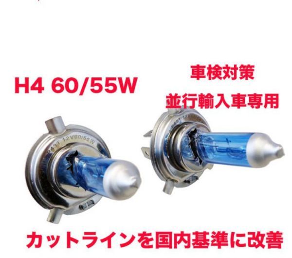 - H4バルブ 60/55W ホワイトバルブ 並行輸入車専用 車検対策 ヘッドライト カットラインを国内仕様に改善 ハロゲン 【KZ-H4-55W】