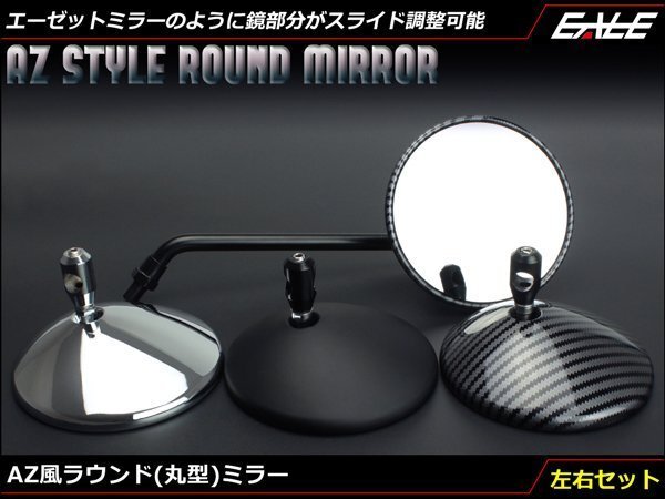> AZ風 ラウンド(丸型)ミラー 左右セット M10正ネジ/逆ネジ M8正ネジ ハンドルクランプタイプ対応 クロムメッキ S-653-S