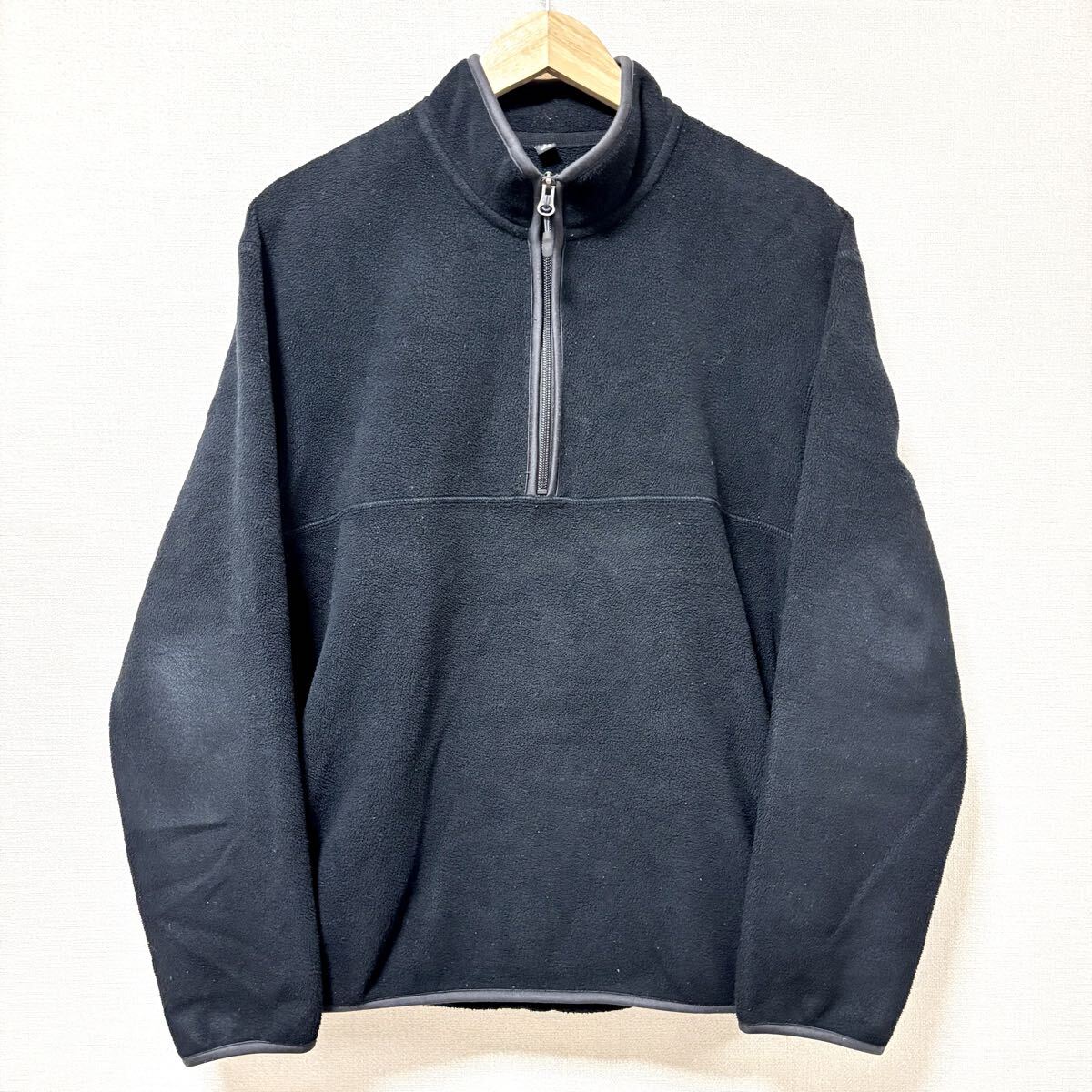 - ゴルフにおすすめ!【UNIQLO】ユニクロ フリース プルオーバー ハーフジップ スポーツ ゴルフ アウトドア ブラック 黒 メンズ M/Y35922SS