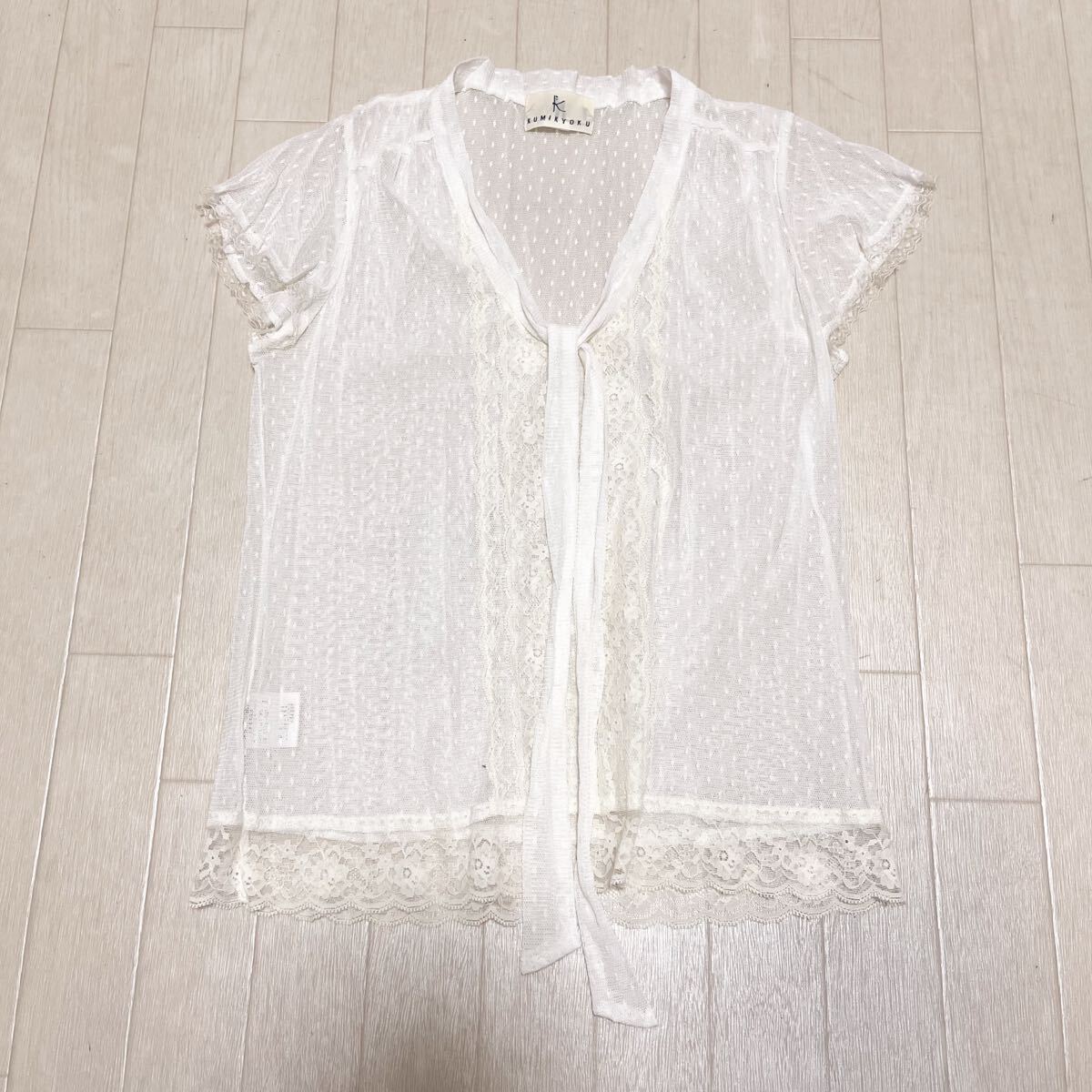 - 和830★ kumikyoku 組曲 ショートスリーブ ブラウス シアー レース 日本製 2 ホワイト レディース