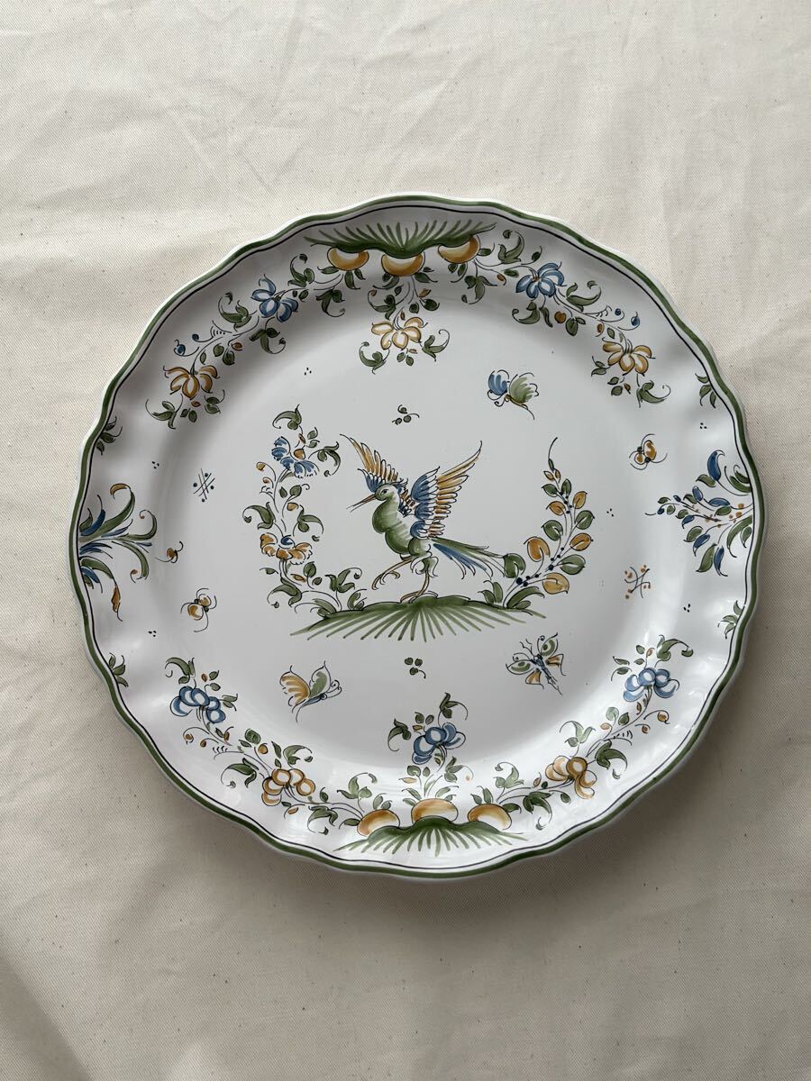 > 美品 フランス ヴィンテージ 皿 ムスティエ焼き ムスティエプレート 南仏(アンティーク ブロカント 蚤の市 骨董 平皿 壁掛け皿