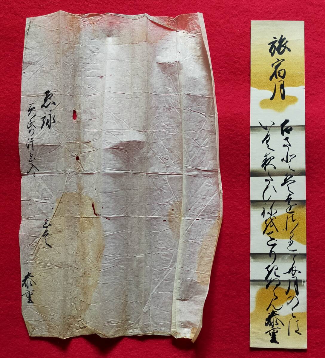 - 古文書 短冊 照沼泰重 和歌 水戸藩士 弥太夫 旅宿月 上紙付き
