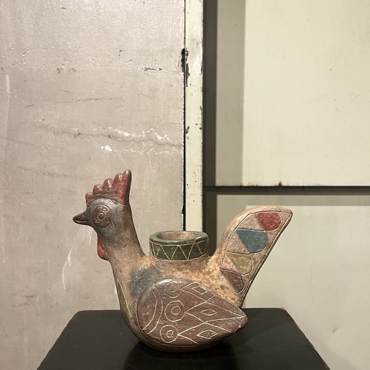 - Vintage トナラ焼 ニワトリ メキシコ トナラ地方 ヴィンテージ陶磁器 陶器 メキシコ民芸 鳥 オブジェ インテリア 置物 キャンドルホルダー