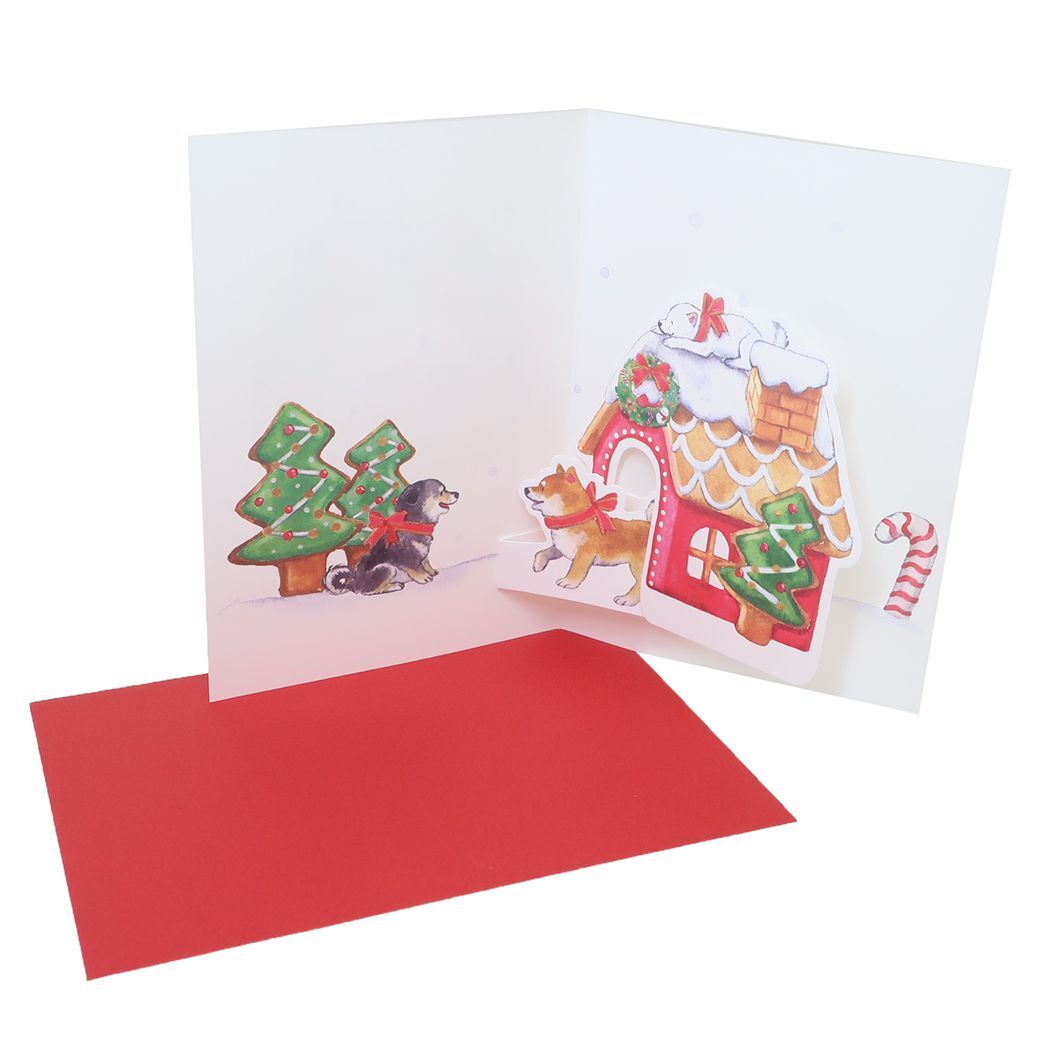 - グリーティングカード CHRISTMAS しばいぬとクリスマスポップアップカード リースとお菓子の家 ギフト雑貨 封筒付き