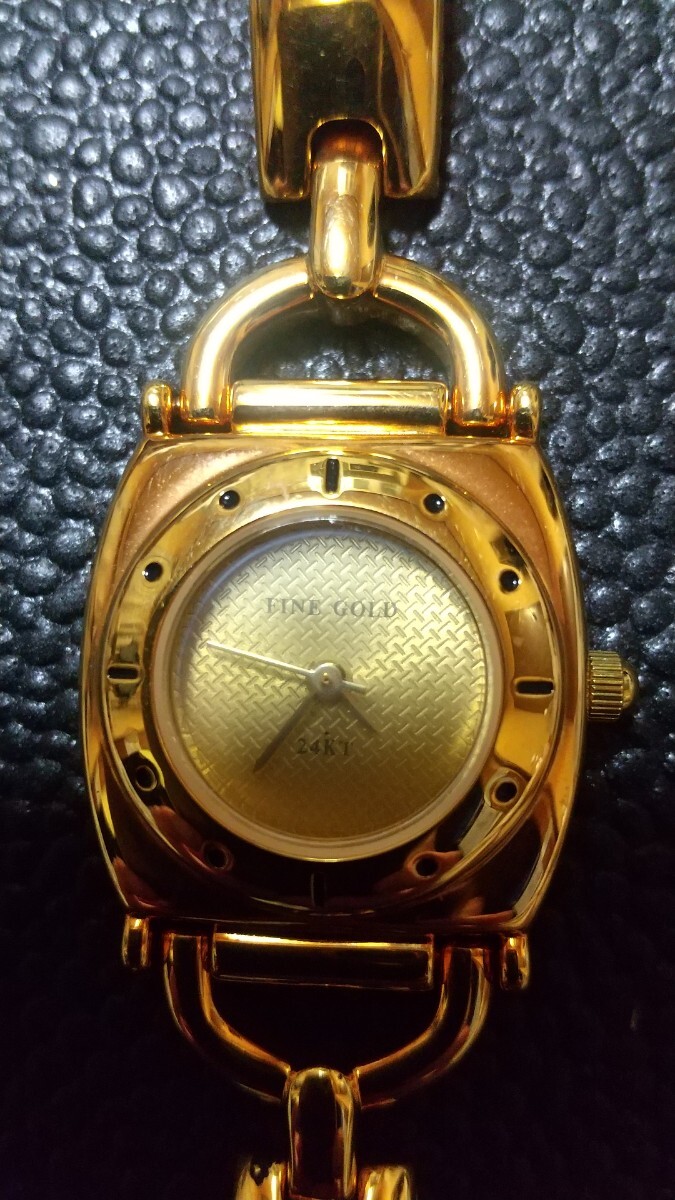 > 稼動品 Fine Gold 24kt ファインゴールド Dial watch 3針 レディース腕時計 豪華 ゴールドカラー nt-014