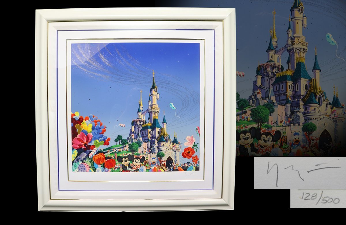 > 【江】真作 限定128/500 ヒロ・ヤマガタ作 ディズニー『ユーロキャッスル』シルクスクリーン 101㎝×99㎝ 古美術品(額装アート)X1582 UTkiu