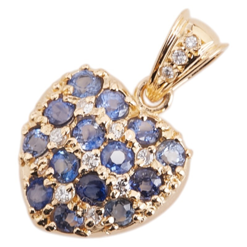 - K18YG イエローゴールド サファイア1.25ct ダイヤ0.14ct ハート モチーフ ペンダントトップ レディース 中古