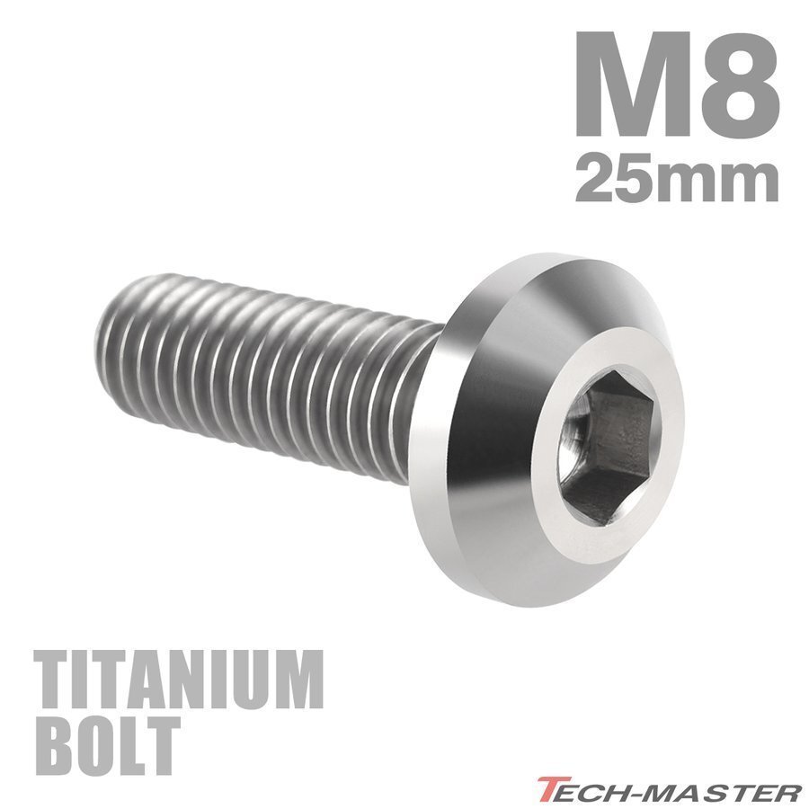 > M8×25mm P1.25 64チタン合金 テーパーヘッド 六角穴 ボタンボルト シルバーカラー 素地 車/バイク 1個 JA751
