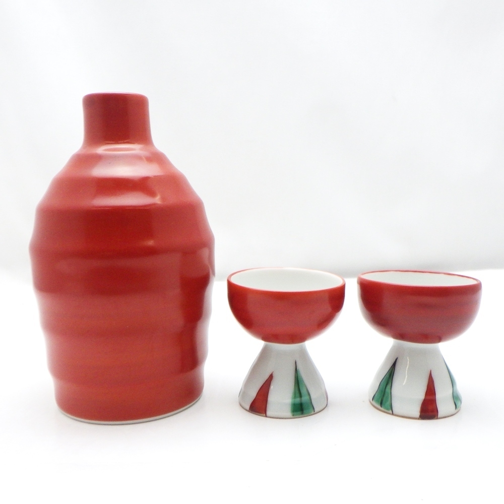 - 未使用 北大路魯山人 写し 北大路徹 監修 赤絵酒器 木箱・認定証つき デッドストック 保管品 返品OK250811−11