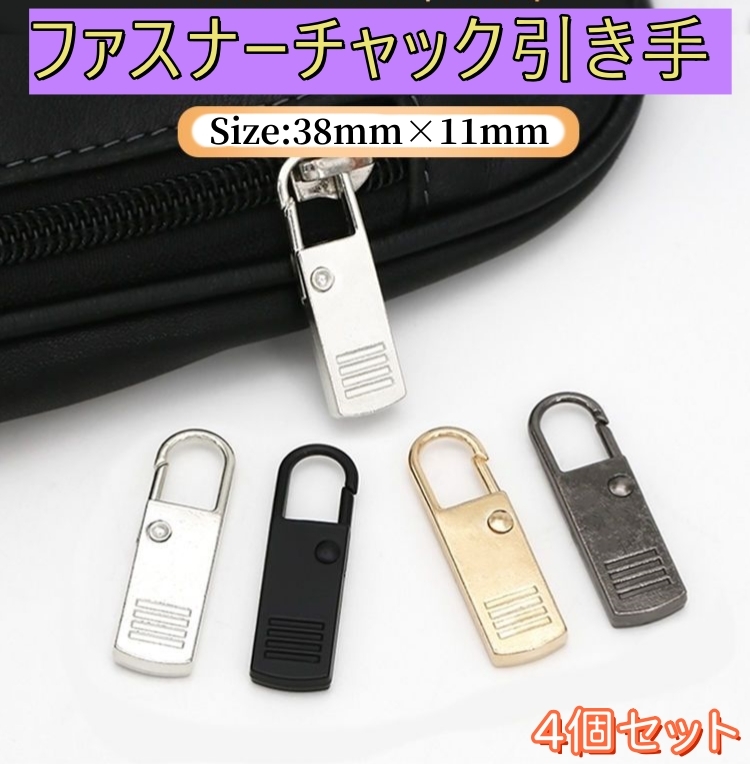 - ファスナー引き手自動バネ式 【 4個セット】 交換用ファスナーの引き手 ファスナー ジッパー チャックヘッド 合金 パーツ