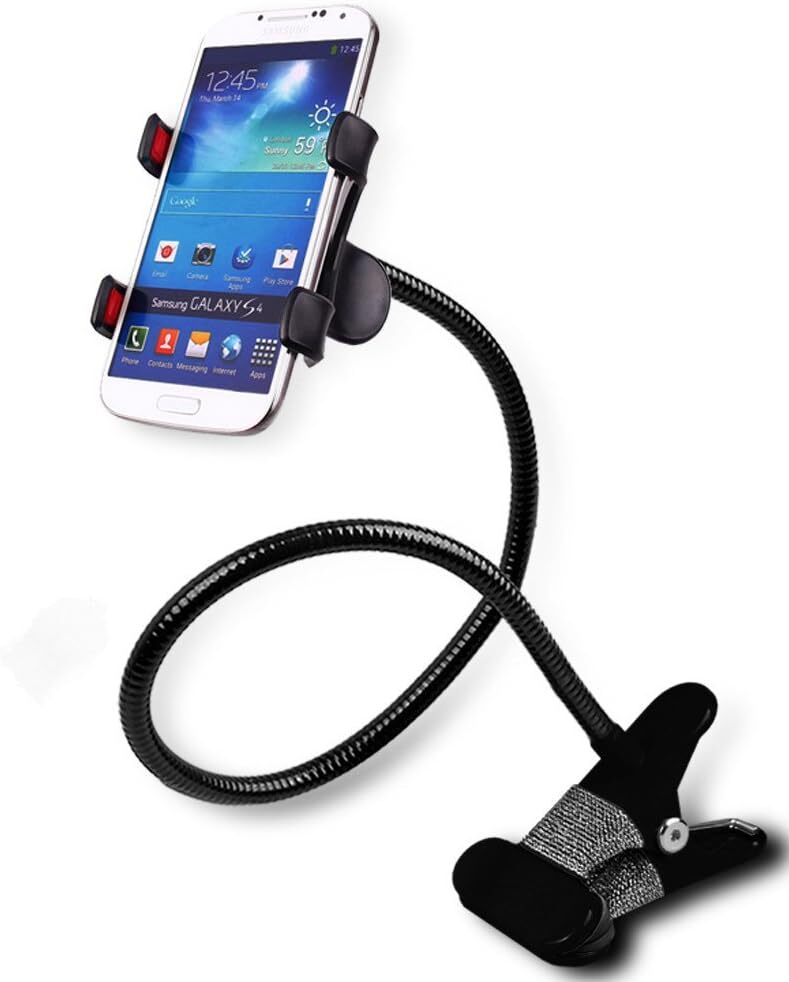 > TOPOOMY スマホホルダークリップ式 フレキシブルアーム 充電ホルダー シリコーン ゴム アルミニウム 360度回転 自由調節 (ブラック)