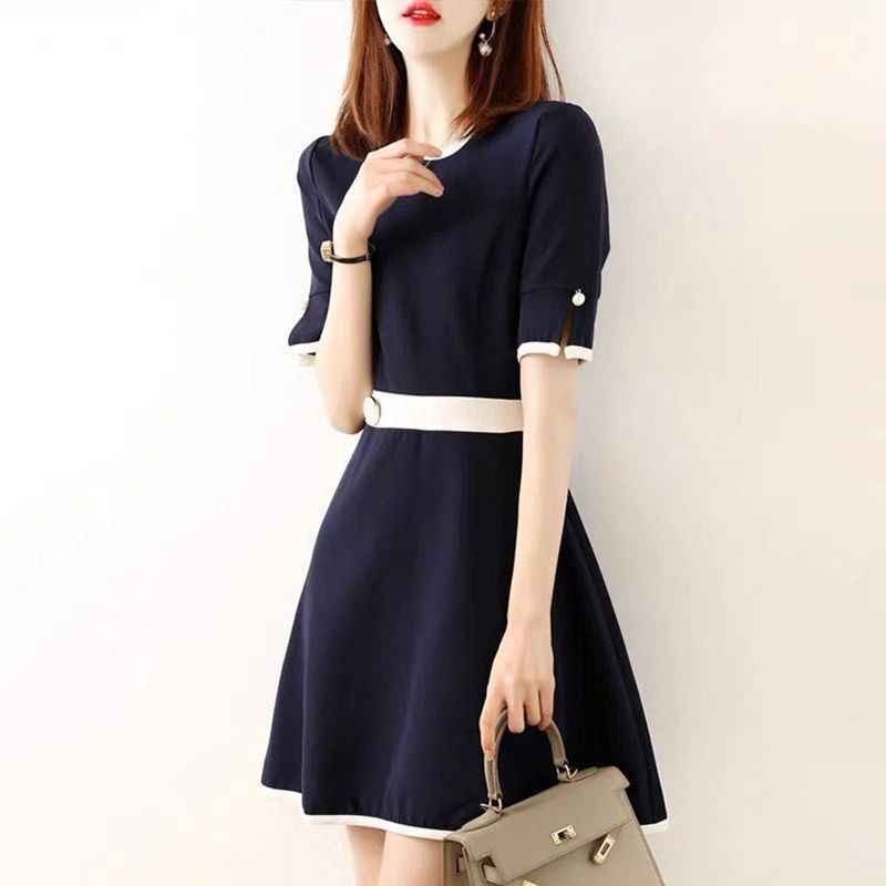 - ワンピース 半袖 ミニ丈ワンピ オフィス 通勤 仕事 OL 2XL ネイビー
