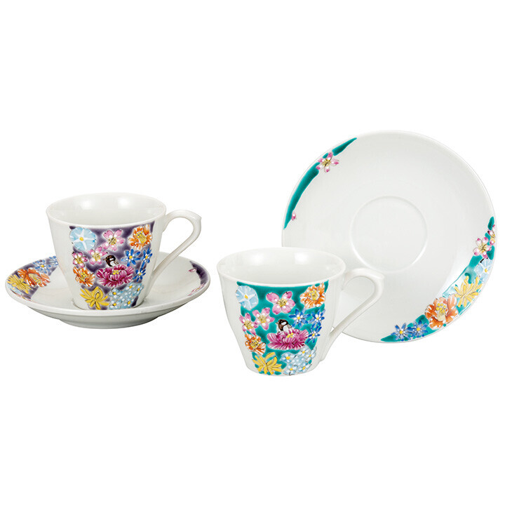 - 九谷焼! 新川敦子 ☆小鳥花詰・ペアコーヒー碗皿☆ K9-1113 新品 コーヒー 紅茶 ミルク ラテ エスプレッソ カプチーノ 茶器 ギフト
