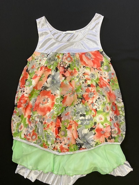 > clear crea タンクトップ キャミソール レディース トップス 花柄 ノースリーブ カットソー 古着 USED 可愛い