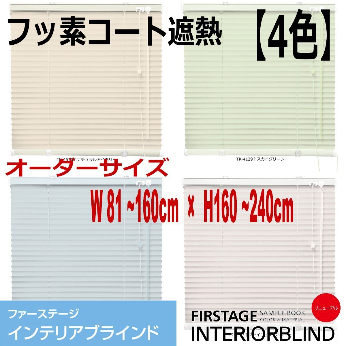 > 【タチカワ機工オーダーブラインド フッ素コート遮熱-4色】【幅161~240cm×高さ81~160cm】オーダーサイズ1cm単位でご指定/巾25mm