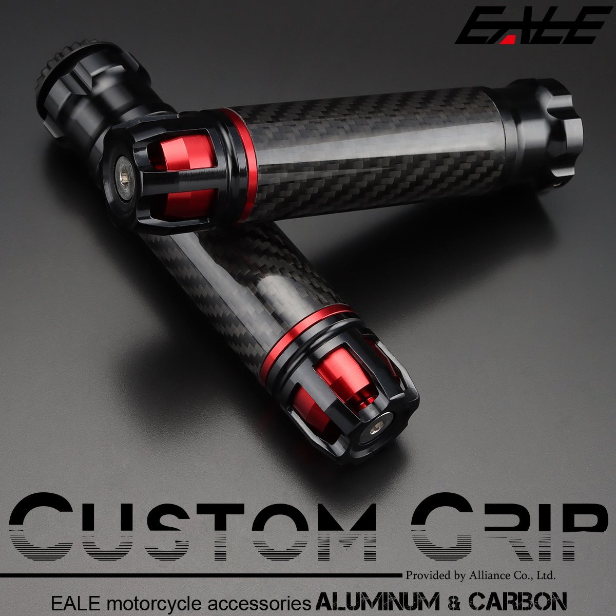 > バイク グリップ カーボン アルミ バーエンド付き ハンドル 22.2mm用 レッド 左右セット カスタム ドレスアップ S-576-R