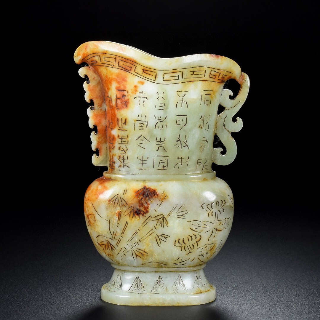 - 漢時代 古和田玉 高古玉彫 白玉 爵杯 酒杯 黄皮 老玉 玉彫 双色 擺件 文案置物擺件 極細工 時代物 唐物 旧家藏出 古賞物 中国古玩 古美術品