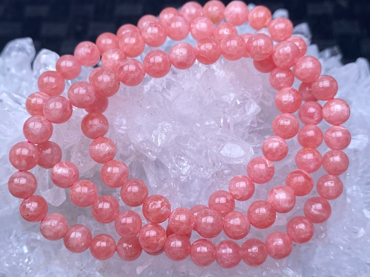 - 即決 0613k129 天然石★【45Aアルゼンチンインカローズ】★ 3重巻き 6-6.5mm 50cm(新品)