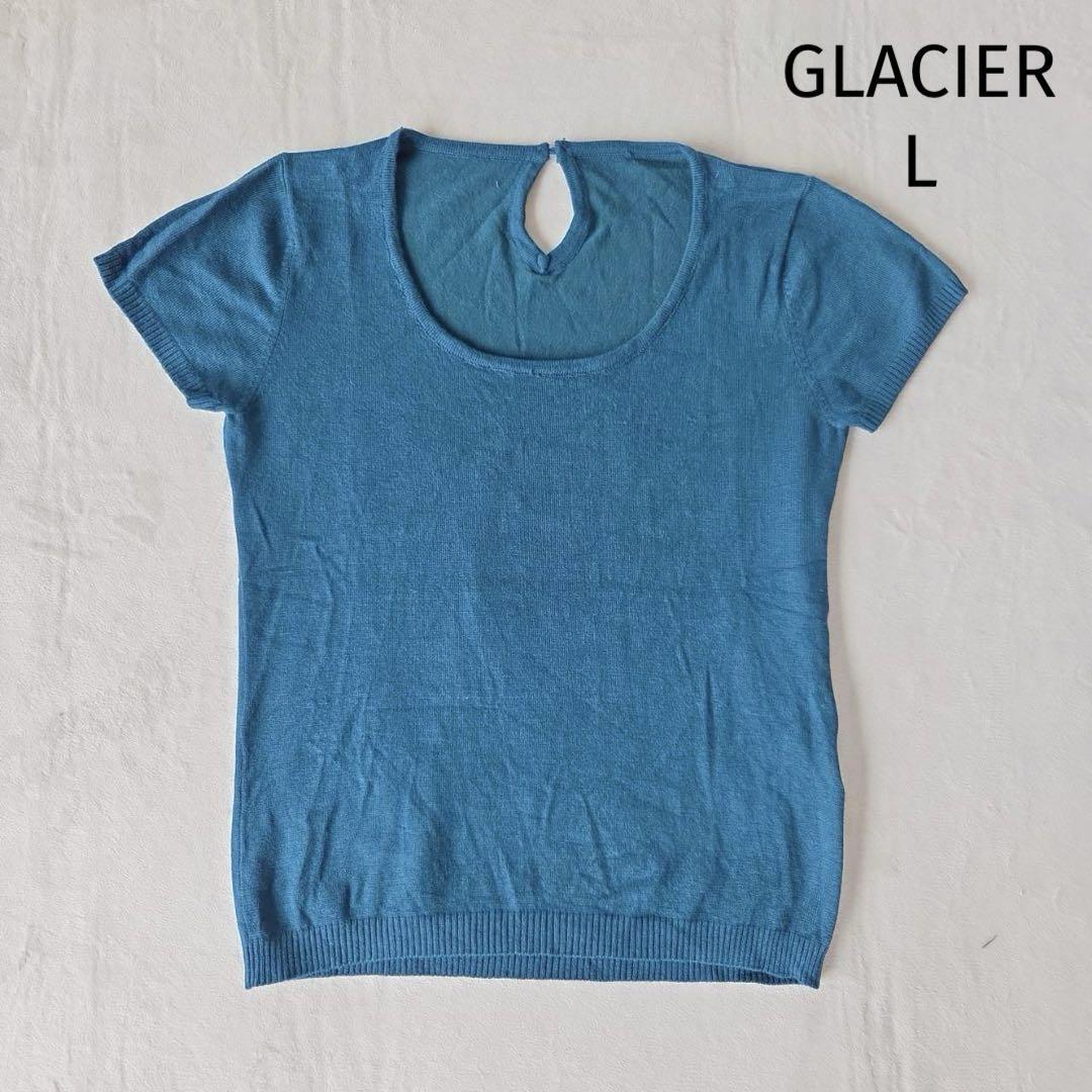 - グラシア GLACIER ニット L 半袖 グリーン シンプル クルーネック