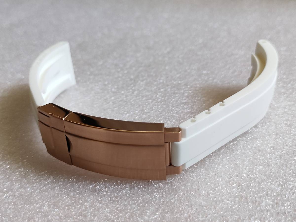 - 【未使用】ラバー時計ベルト グライドロッククラスプ ローズゴールド ホワイト 互換品(傷あり)