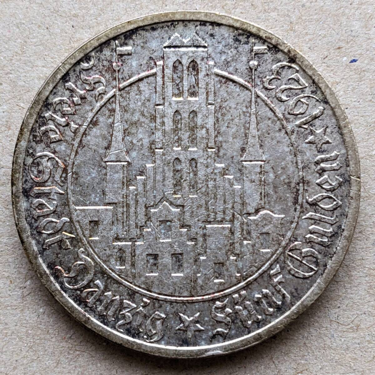 - 1923年 5グルデン ダンツィヒ 銀貨 UNC