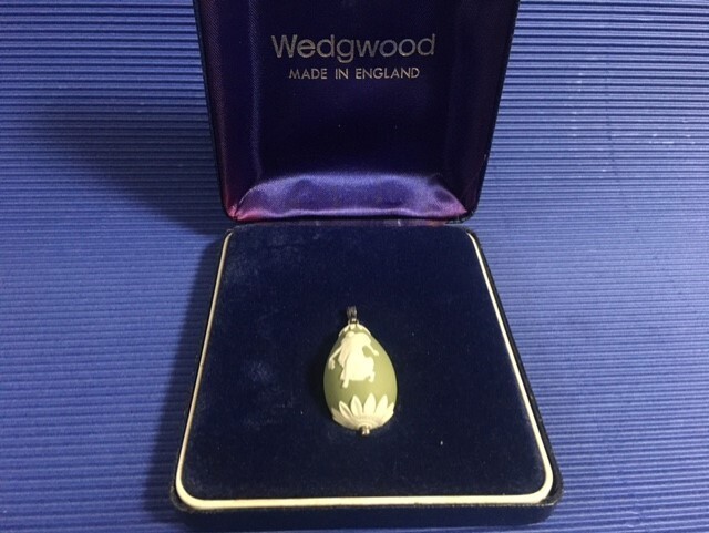 - ◎ウェッジウッド グリーンジャスパー 卵形ペンダント 「踊り子」箱付◎cu