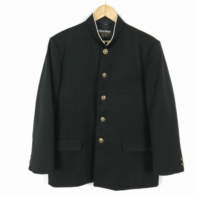 - 学生服 学ラン 170B 男子 富士ヨット Nano Wave 上着 丸洗い可 標準型学生服 ラウンドカラー カシドス 黒 中古 ランクC a3 JJ6496