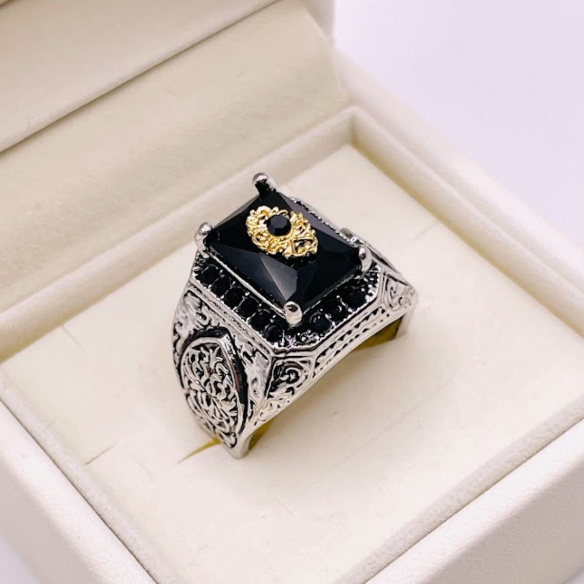 - 【21号】メンズ 指輪 リング 黒×シルバー ゴツい 太め レトロ アクセサリー