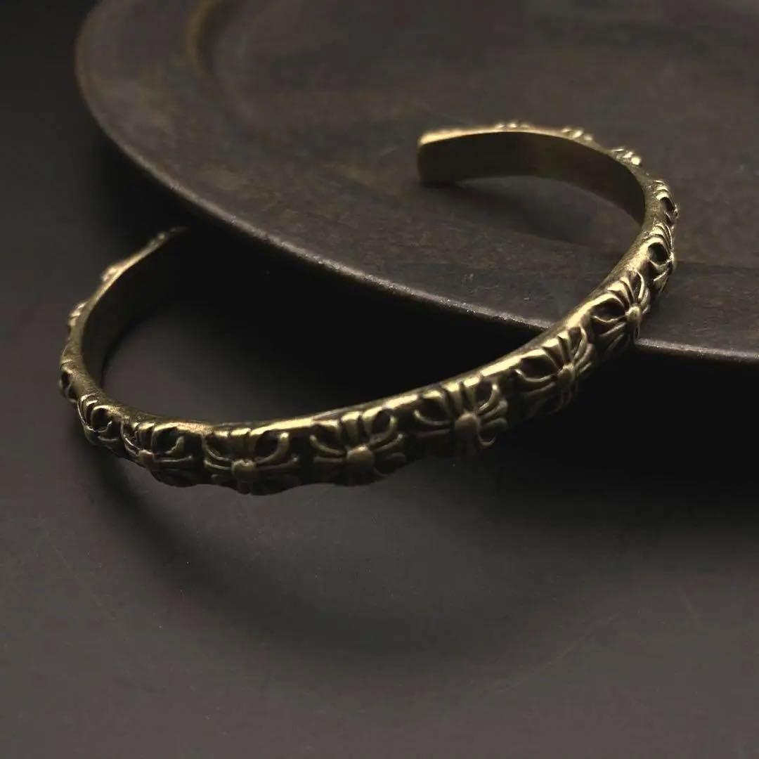 > 168 真鍮 バングル 腕輪 十字架 ビンテージ レトロ アンティーク ヴィンテージ 真鍮製 アクセサリー ハンドメイド 金色 ゴールド 金運