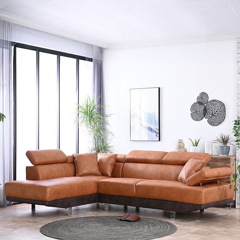 北欧デザイン レザーファブリック 大型カウチソファー キャメル色