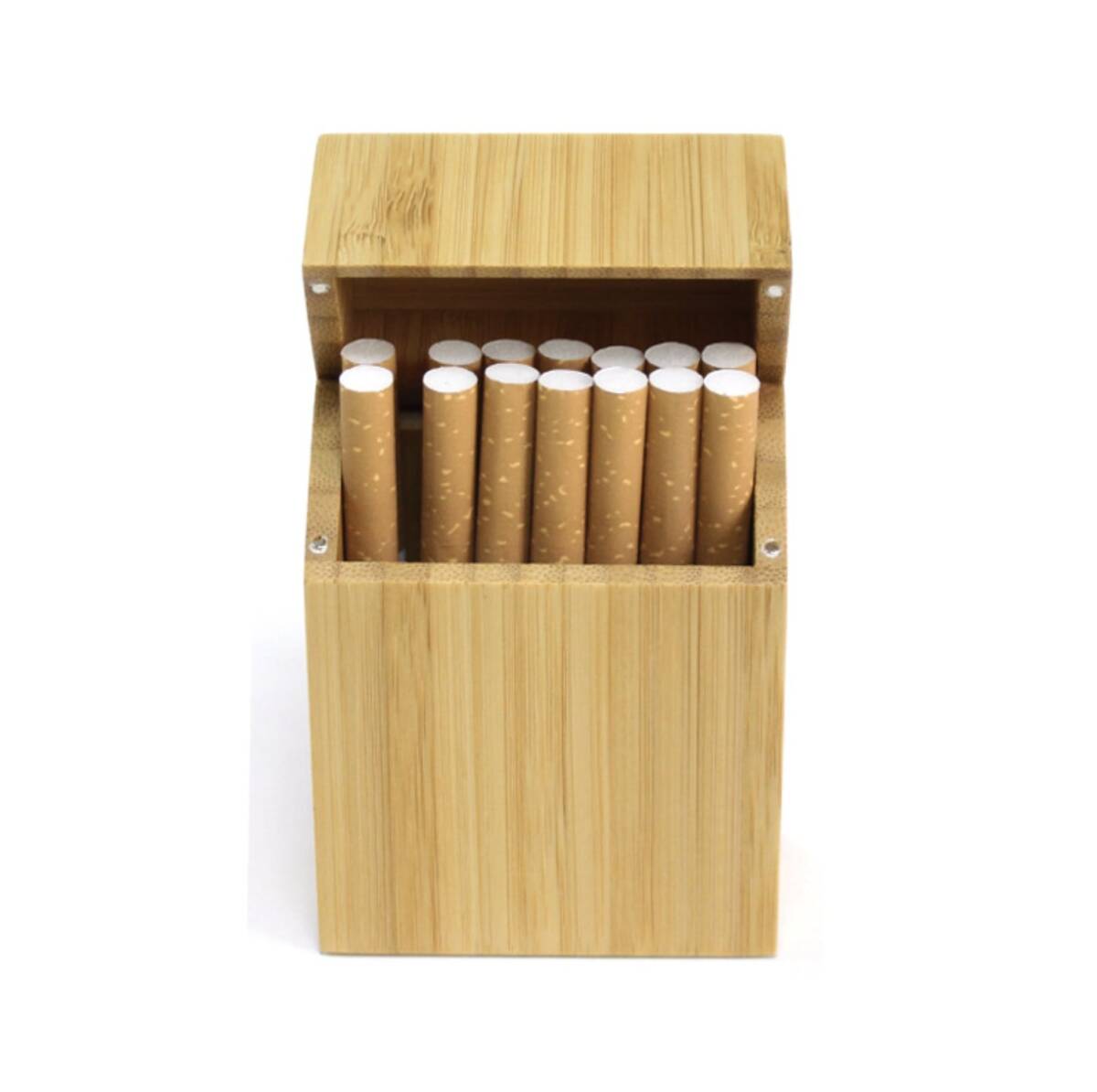 - 炭化竹製 シガレット タバコ ケース マグネット付き落下防止 ライトブラウン