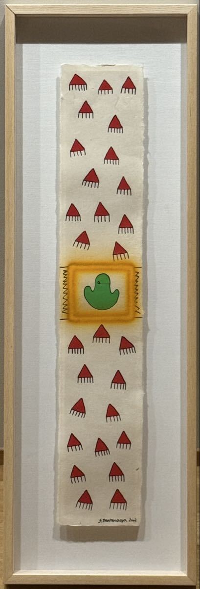 > 元永定正 【真作】 「さんかくのまんなかにみどりのかたち」 2002年作 和紙にアクリル 15号オーバーサイズ 具体美術協会