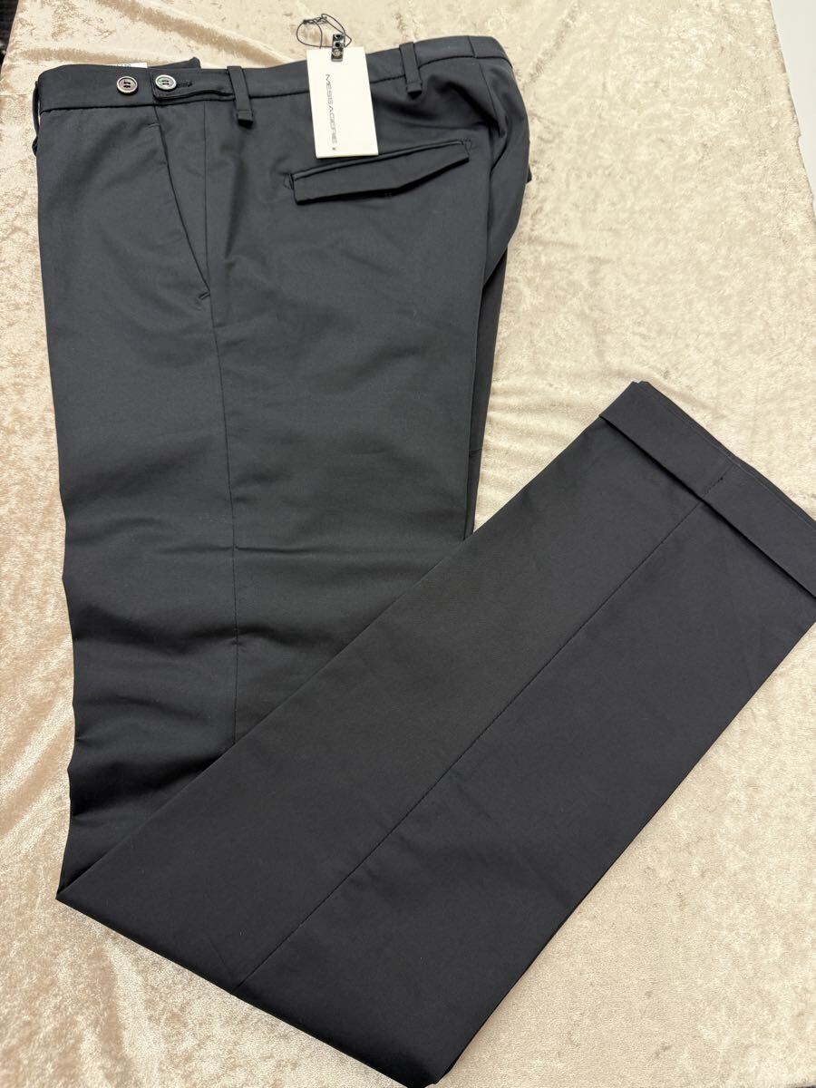 - 【 未使用 タグ付き 】 MESSAGERIE メッサジェリエ コットンパンツ サイズ 46 イタリア製 スラックス ブラック 黒 ストレッチ
