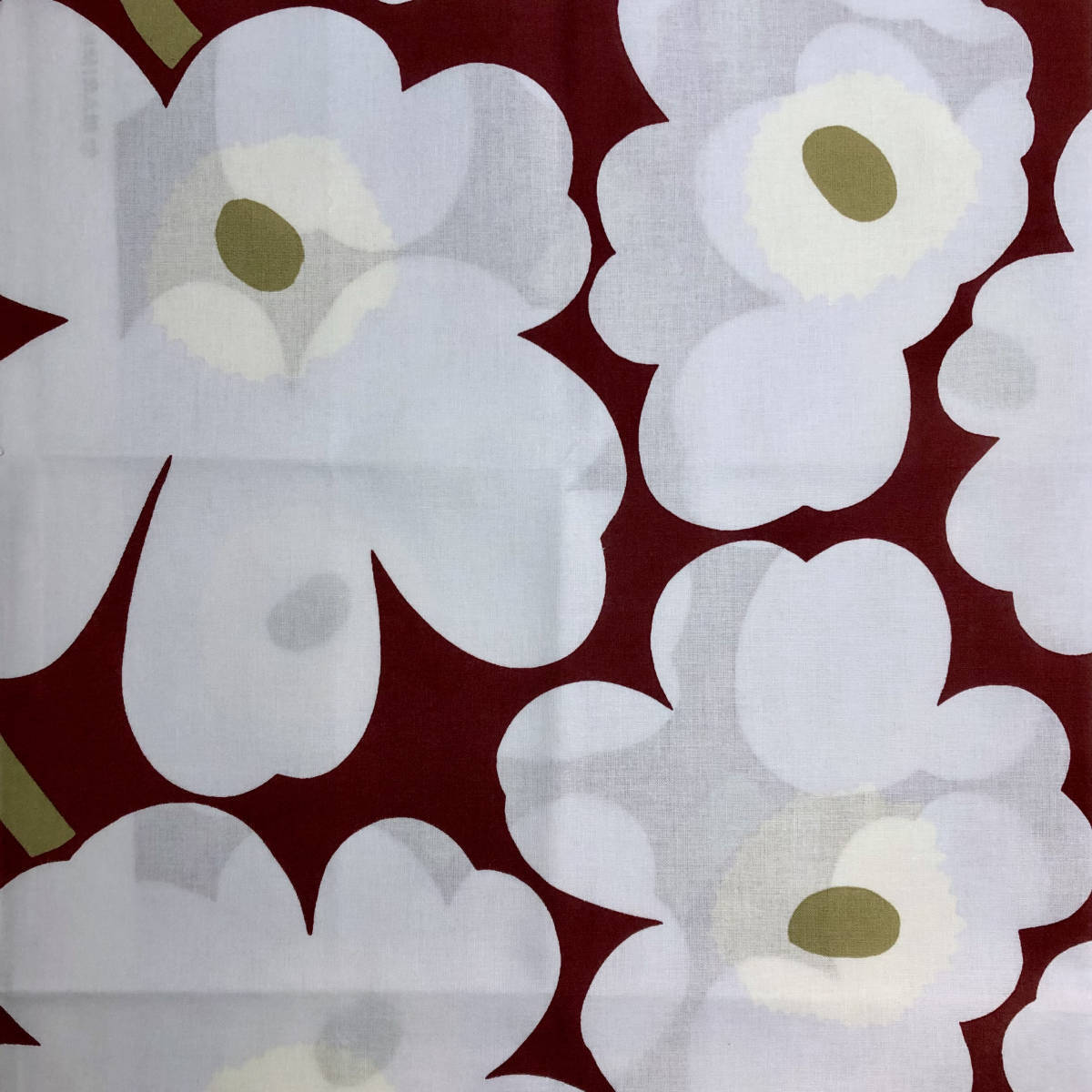 > marimekko ハーフカットクロス/はぎれ ピエニウニッコ ダークレッド×ライトグレー×ナチュラルホワイト 68×50cm マリメッコ