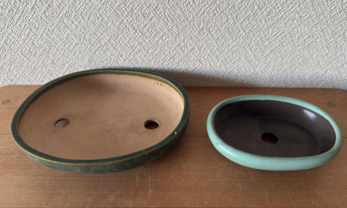 - 盆栽鉢 豆盆栽鉢 山野草鉢 多肉植物鉢 植木鉢 2鉢セット陶器製(緑・青)
