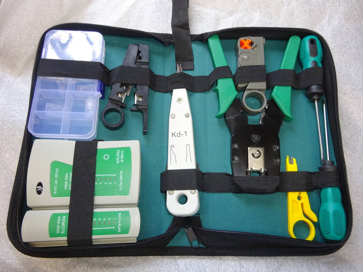 - LANケーブル自作工具キット LAN圧着ペンチ ストリッパー付き テスター コネクター8個 ブラグ ネットワーク修理ツールボックス付き
