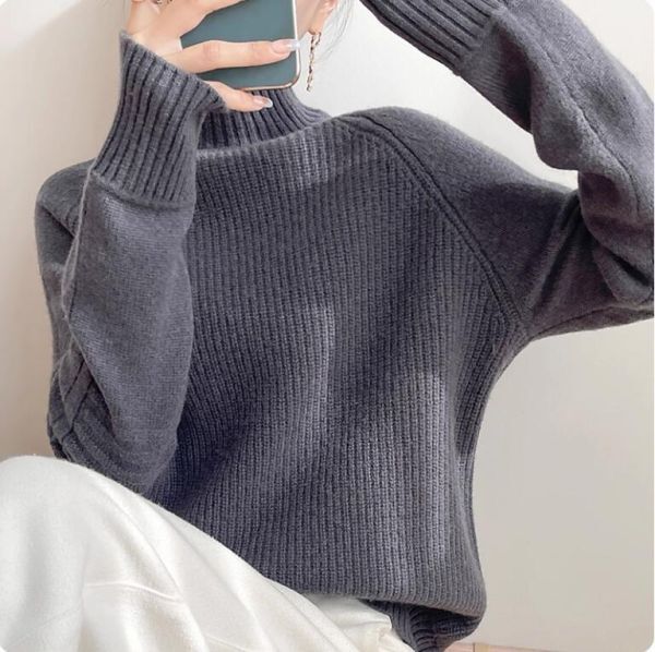 > 新入荷*秋冬 上品 着痩せ ニット トップス レディース 長袖 オフィス セーター ゆったり きれいめ 暖か 通勤 ニットセーター*グレー