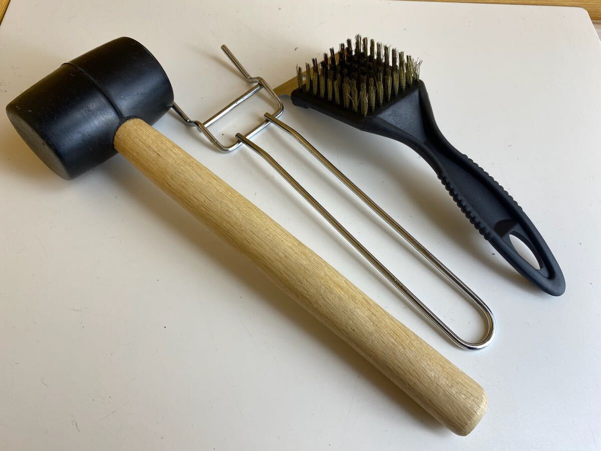 - 美品! BBQ 3点 アウトドア 小物セット ゴムハンマー リフター 網つかみ 焼き網ブラシ