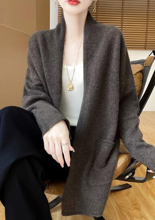 - 新入荷*秋冬 上質 セーター 長袖 ニット アウター 羽織り ゆったり 着やせ 園行事 防寒 暖か ミドル丈 ニット ロングカーディガン*コーヒー