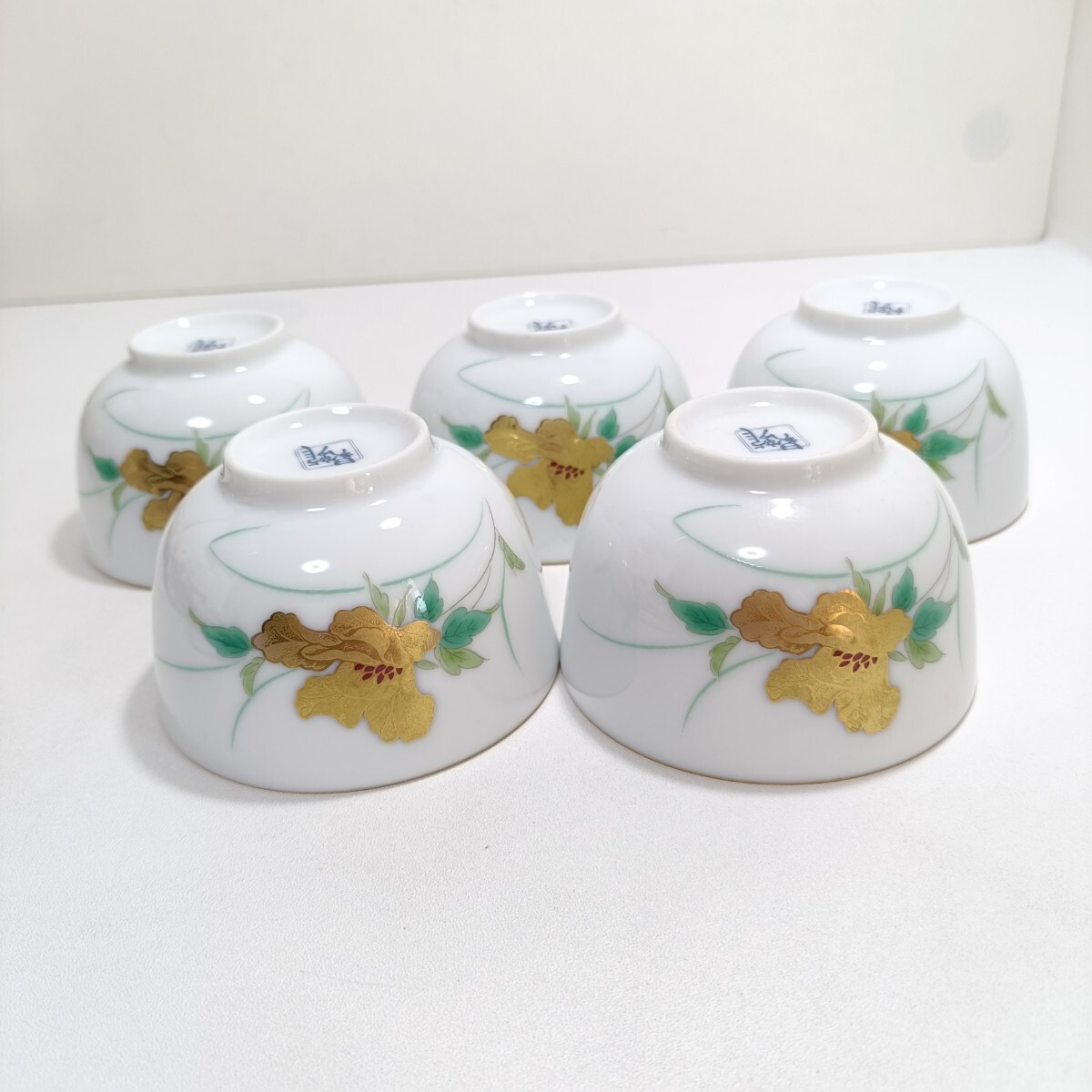 - 有田焼 昇龍窯 金彩花文茶器揃 汲出 直径8.4cm×高さ5.4cm 5点セット 未使用品 [ 和食器 茶器 湯呑]
