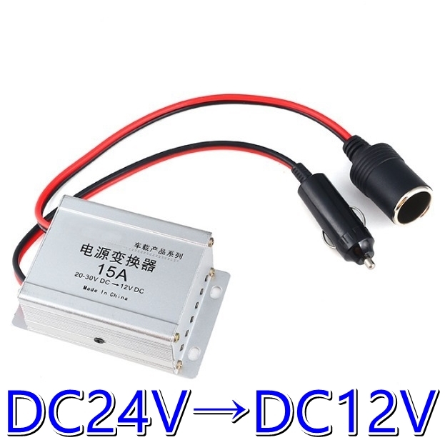 > DC/DC コンバーター 24V→12V 変換/デコデコ/15A★トラック・バス★汎用/小型/軽量/新品★シガー ソケット型ですぐ使える 直流電流 電源