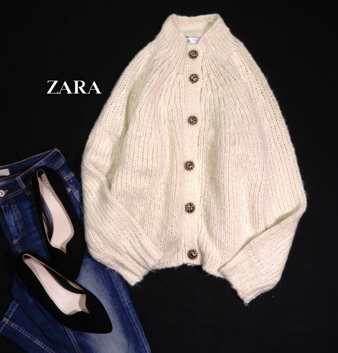 - 未使用 ザラ ZARA 大人可愛い☆モヘア混 起毛 ハート柄ボタン ニット カーディガン M ゆったり