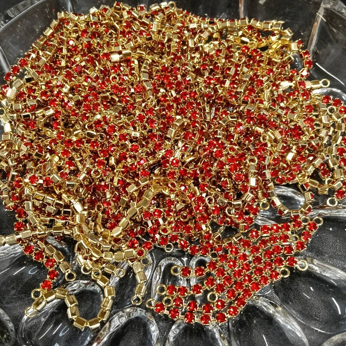 - ☆ほぼ未使用 SWAROVSKI スワロフスキー ヴィンテージ ルース 約183g カップチェーン 連爪 3mm 赤×ゴールド色 裸石 アクセサリー B-418