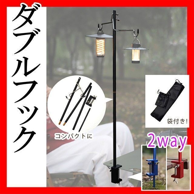- ランタンスタンド地面黒 卓上 ハンガー テーブル ダブルフック杭2wayキャンプアウトドアロング照明高さ調節
