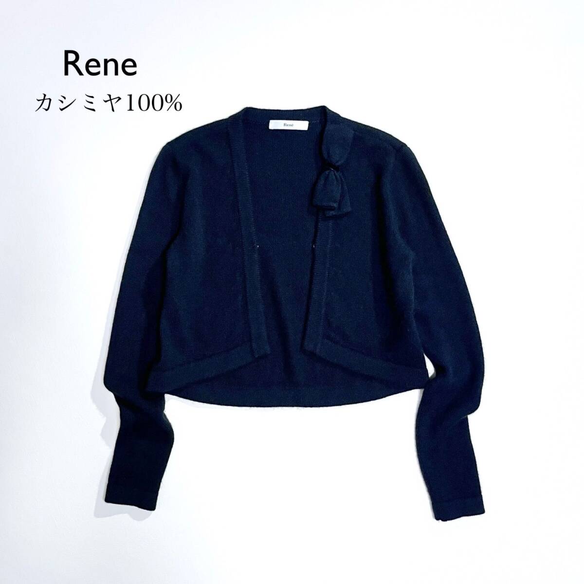 > ci144 Rene カシミヤ100% ベロアリボンボレロ ノーカラーカーディガン ショート丈 前ホック