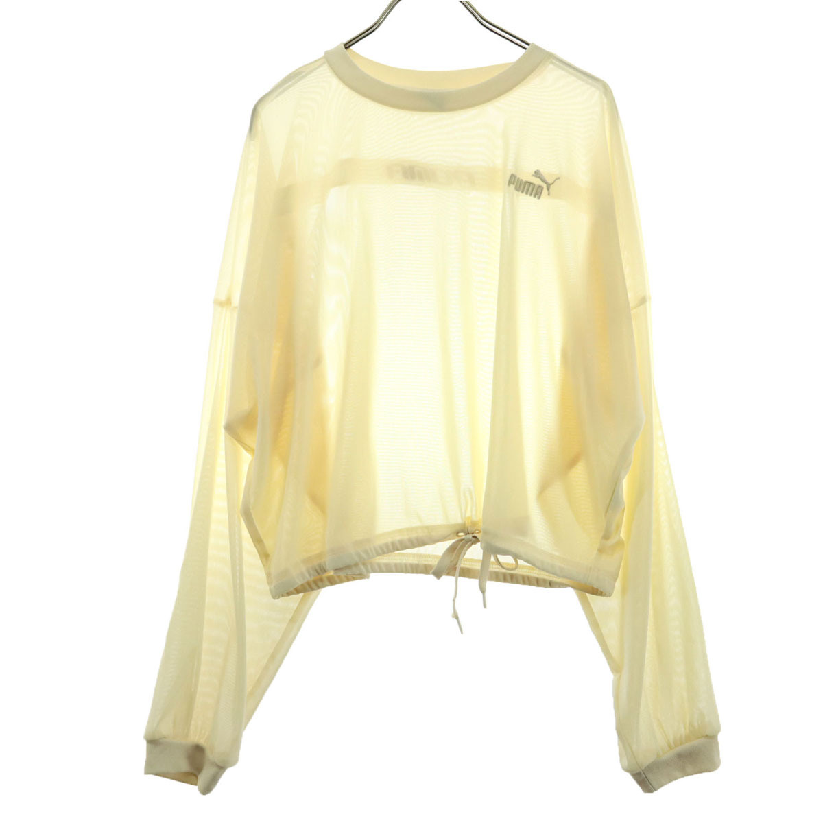 美品 PUMA プーマ ワンポイントロゴ 長袖 ブラウス M ホワイト プルオーバー レディース