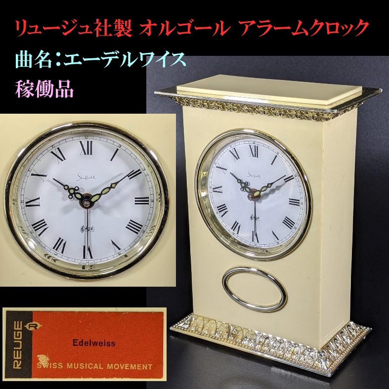 - ◆動画有★稼働品◆超希少!機械式リュージュ社オルゴールアラームクロック/ゼンマイ式置時計目覚まし時計/エーデルワイス/REUGE/Sheffield