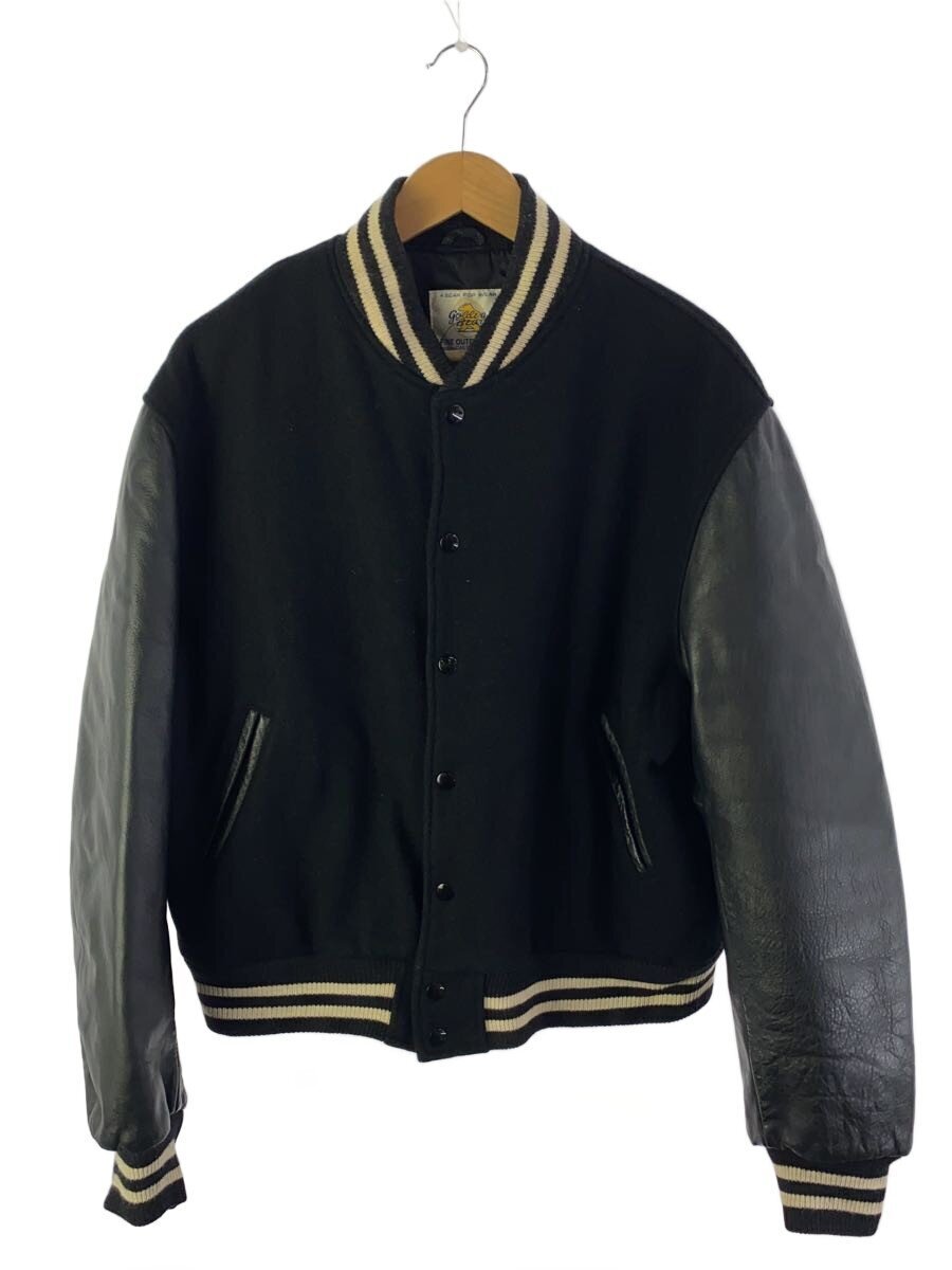 - GOLDEN BEAR◆スタジャン/XL/ウール/ブラック/白タグ/70~80s/袖レザー/タバコ臭有/汚れ有