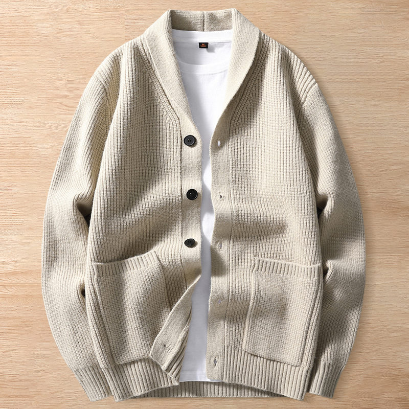 > Y6412-2XL ベージュ 新品 カーディガン ウール混 ニット セーター 着心地抜群 柔らか 防寒 暖かさ 秋冬 厚手 メンズ カジュアル トップス